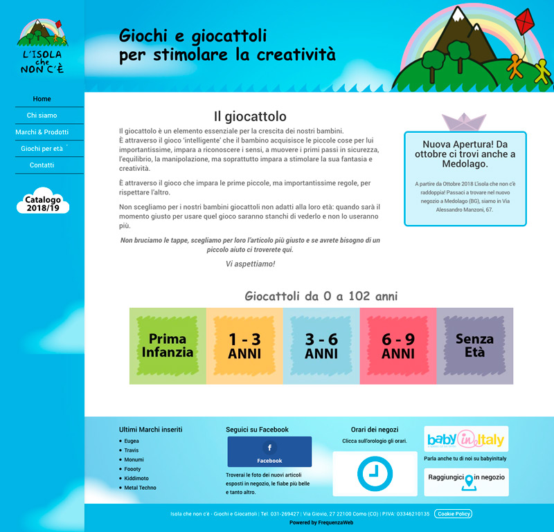 Queste mancanze sono state il fulcro da cui siamo partiti per realizzare il nuovo sito web dell’isola che non c’è di Como. Abbiamo inoltre prestato molta attenzione nel rispettare lo spirito del negozio, legato a colori chiari e a uno stile che ricorda i disegni dei bambini.